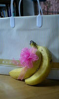 背後の袋(百均)に入れて「いかにも」感を振りまきつつ、中身マジバナナ。