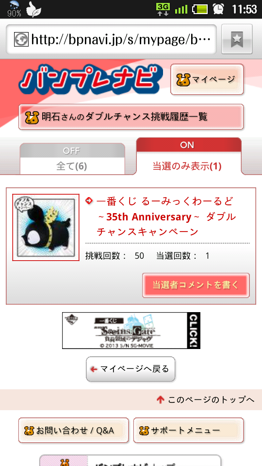 生まれて初めてダブルチャンス当たりました、超嬉しいです。